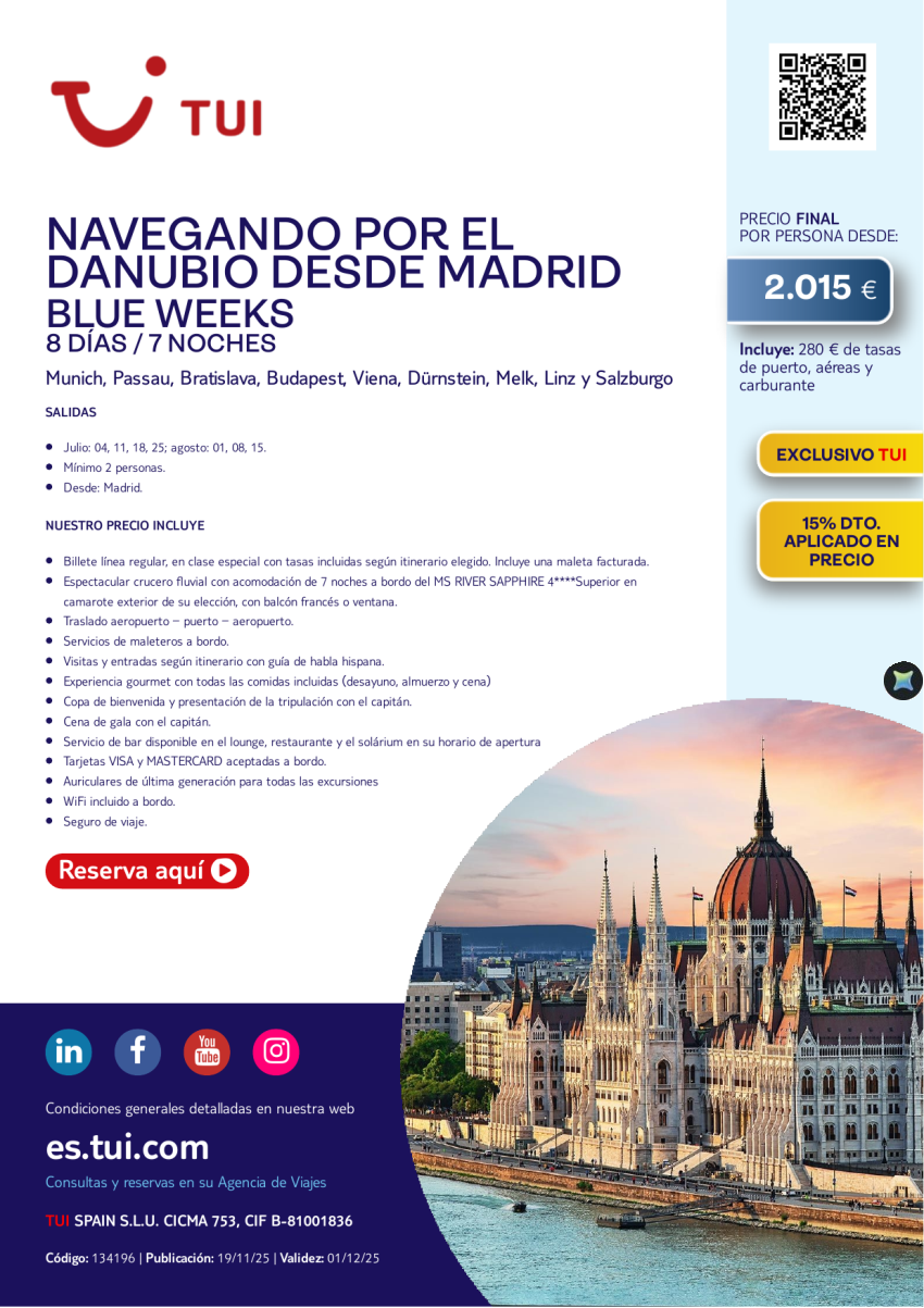 Blue Weeks. Navegando por el Danubio. 8 días / 7 noches. 15% dto. Precio desde 2.015 €